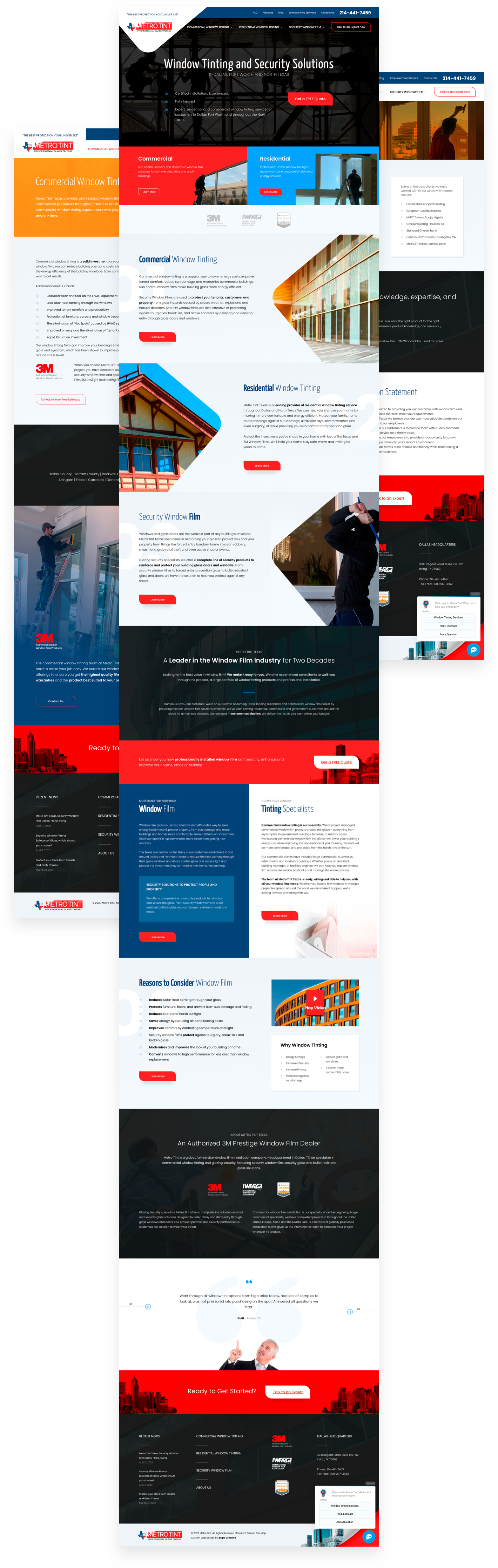 After being unsatisfied with their previous website that was just “thrown up” by a novice developer, their goals for the new site were to generate high-level leads from their target audience, which includes high-end residential clients and commercial clients. It was very important that the new site gave a very positive first impression when potential clients visit the site, therefore the website needed to look professional and appeal to their higher-end target clientele. Metro Tint’s need for a more professional site also meant that their new site must be a better representation of their brand and expertise to position themselves as a trusted expert in their industry.