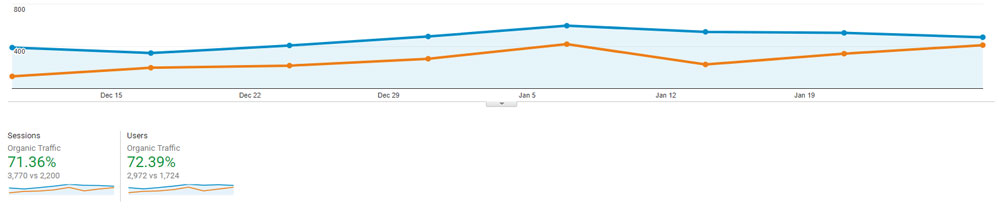 After making a tremendous effort in the first couple of months, Dallas SEO Dogs’ strategy for HIDE increased their organic traffic by 71.36% from the previous period.